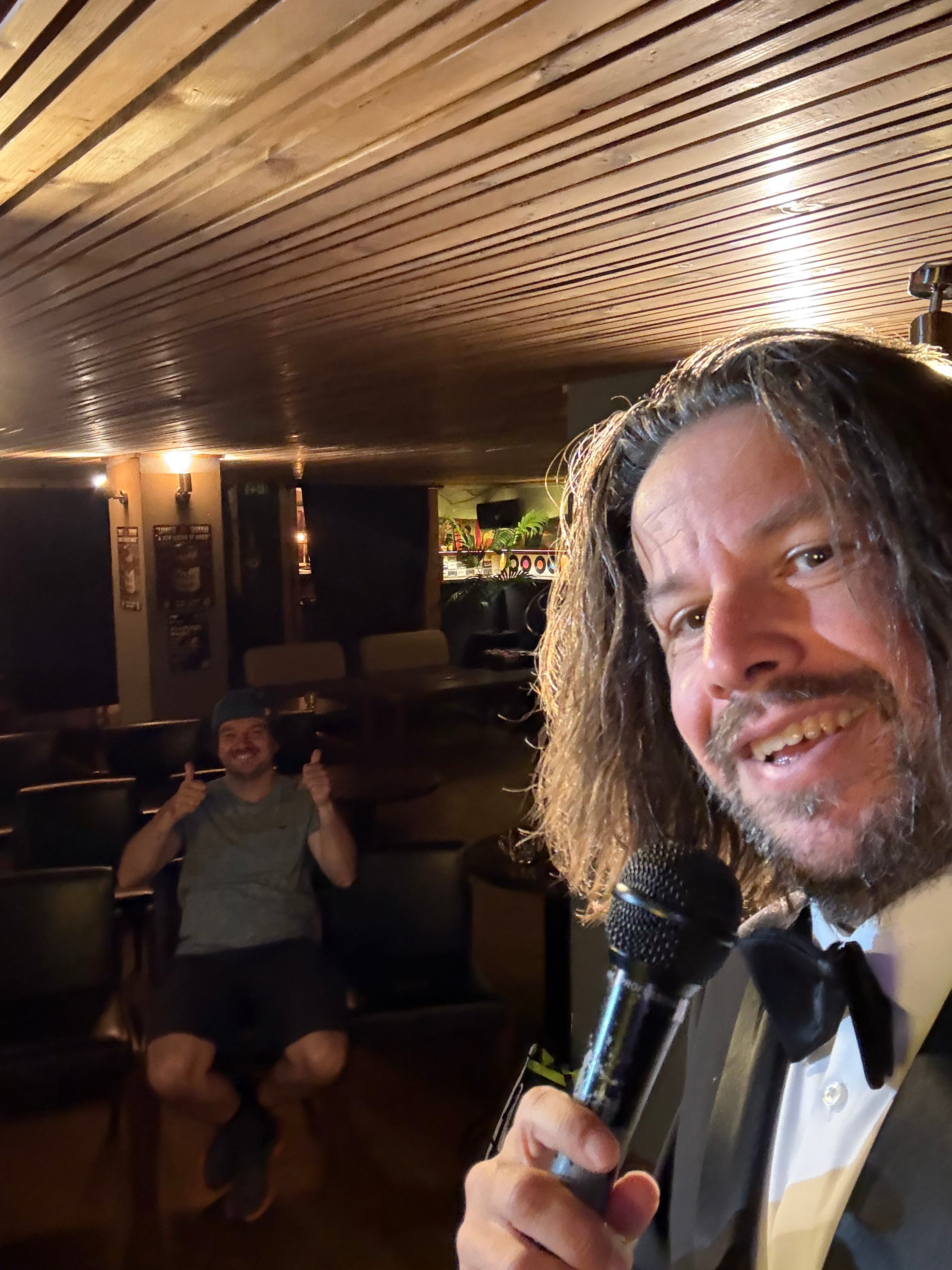 Doordash in Scotland is deliveroo like a kangaroo that delivers food so im waiting for deliveroo to deliver pizza with no cheese bc im vegan baby let me tell ya Scottish pizza with no cheese is much better than it sounds like its not like good good but its like good. Another Scotland thing is you cant have kids under 18 in a bar unless there is a kitchen. That is why the audience of my show today was 1 person and not 5. There was a family with 2 kids early for the magic show that really were into seeing comedy too the kids seemed cool enough like teenagers whod get it and the parents had good vibes but the law is the law and they had to go find jokes and tricks somewhere with no booze or a kitchen. Audience of 1 still counts maybe even more than if it was for a thousand ppl I gave Ethan every chance to leave and told him if he wants to bail at anytime just get up and go no prob. My trick to performing to one person is to tell them no pressure to laugh when i pause and play to the empty chairs staring into one persons eyes while performing is psychotic i know bc ive done it we had a great time or at least a good time definitely a decent time the show happened and thats whats important. Ethan is a legend and he gave me £10 i dont even ask for money at the end of the show. Also did a showcase show at the mash house Great Times hosted by 2 nyc comics